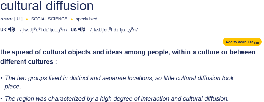 Figure 1.3. Definition of cultural diffusion. Cambridge dictionary2. Accessed 21 August 2025.