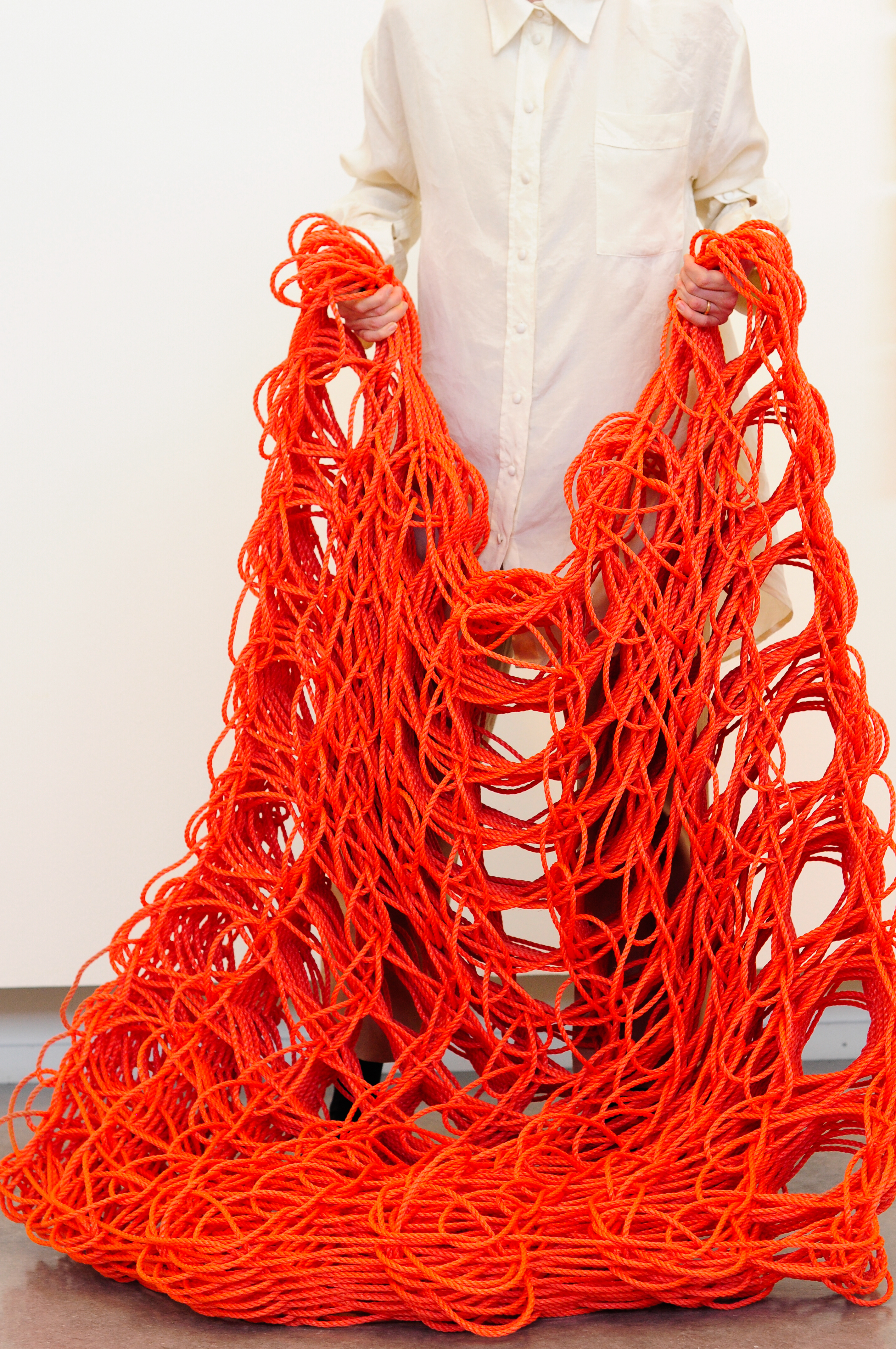 Swedish designer Svea Tisell has brought MultiWeave into the realm of functional object-making. Her furniture line, showcased under the brand Kryss, uses reclaimed climbing rope to create self-supporting structures without frames. Through careful tensioning and the inherent strength of the MultiWeave geometry, the furniture adapts subtly to weight and pressure. These works highlight sustainability, mono-materiality, and modularity, pointing to MultiWeave’s potential in environmentally conscious design. A video from Tisell’s studio demonstrates her process (Figure 12) and the adaptability of her pieces in real-world use9.
