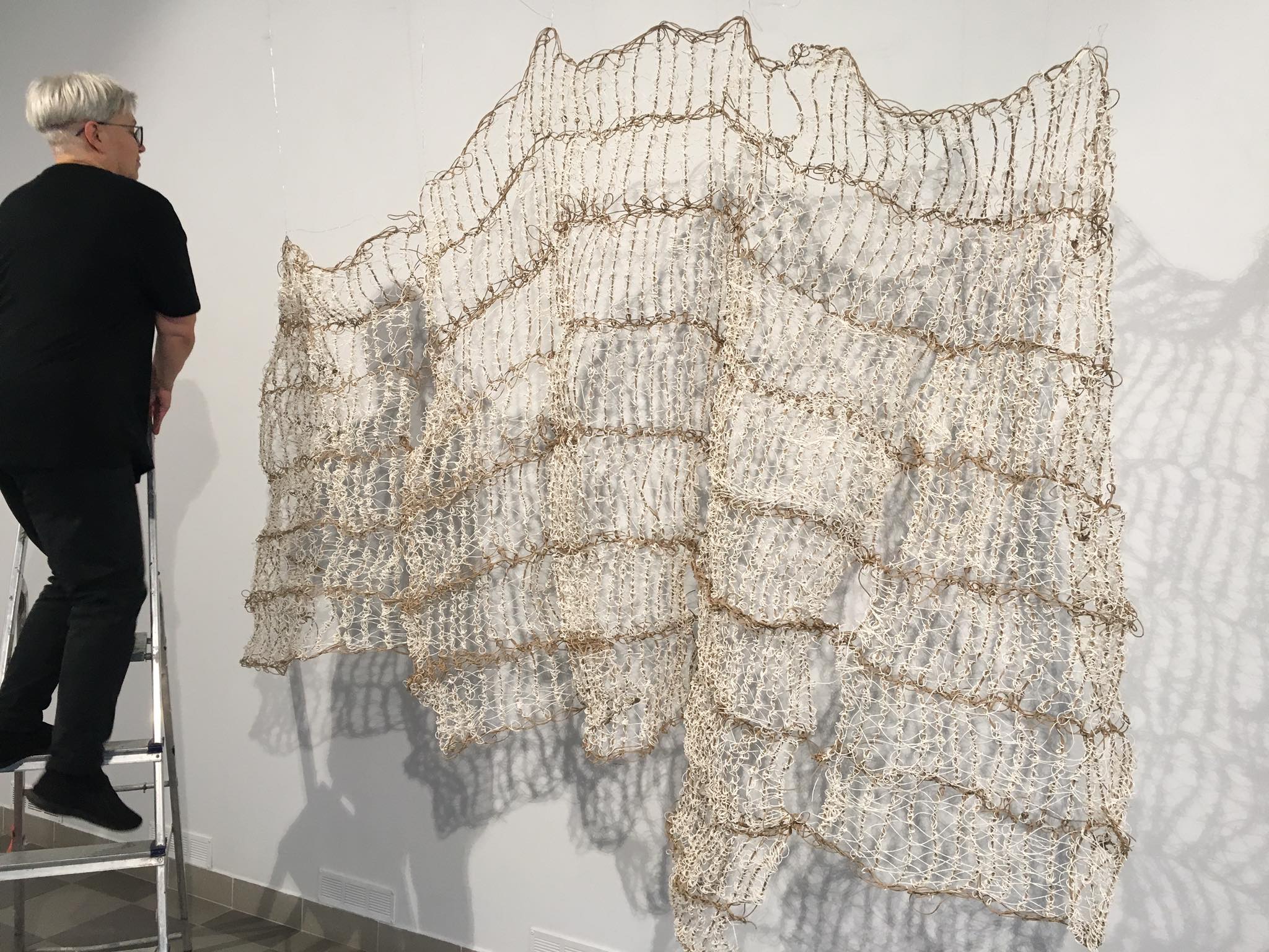 Figure 5: Segment of the installation in which the paper yarn structure follows the path of a Knight’s Tour sequence. Kadi Pajupuu, Ratsurada (Knight’s Tour), HOP Gallery, Tallinn, 2020.