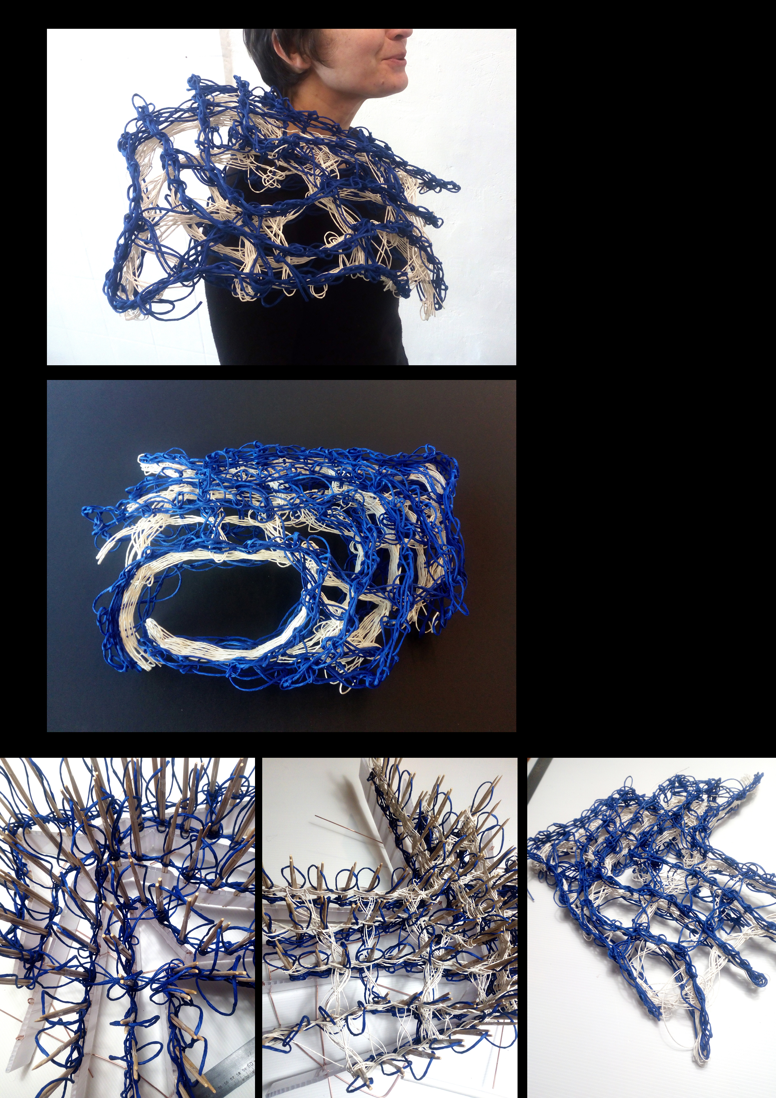 Figure 11: Christina Kasesalu testing how wearable this structure is. Photo by Grete Käärma.
