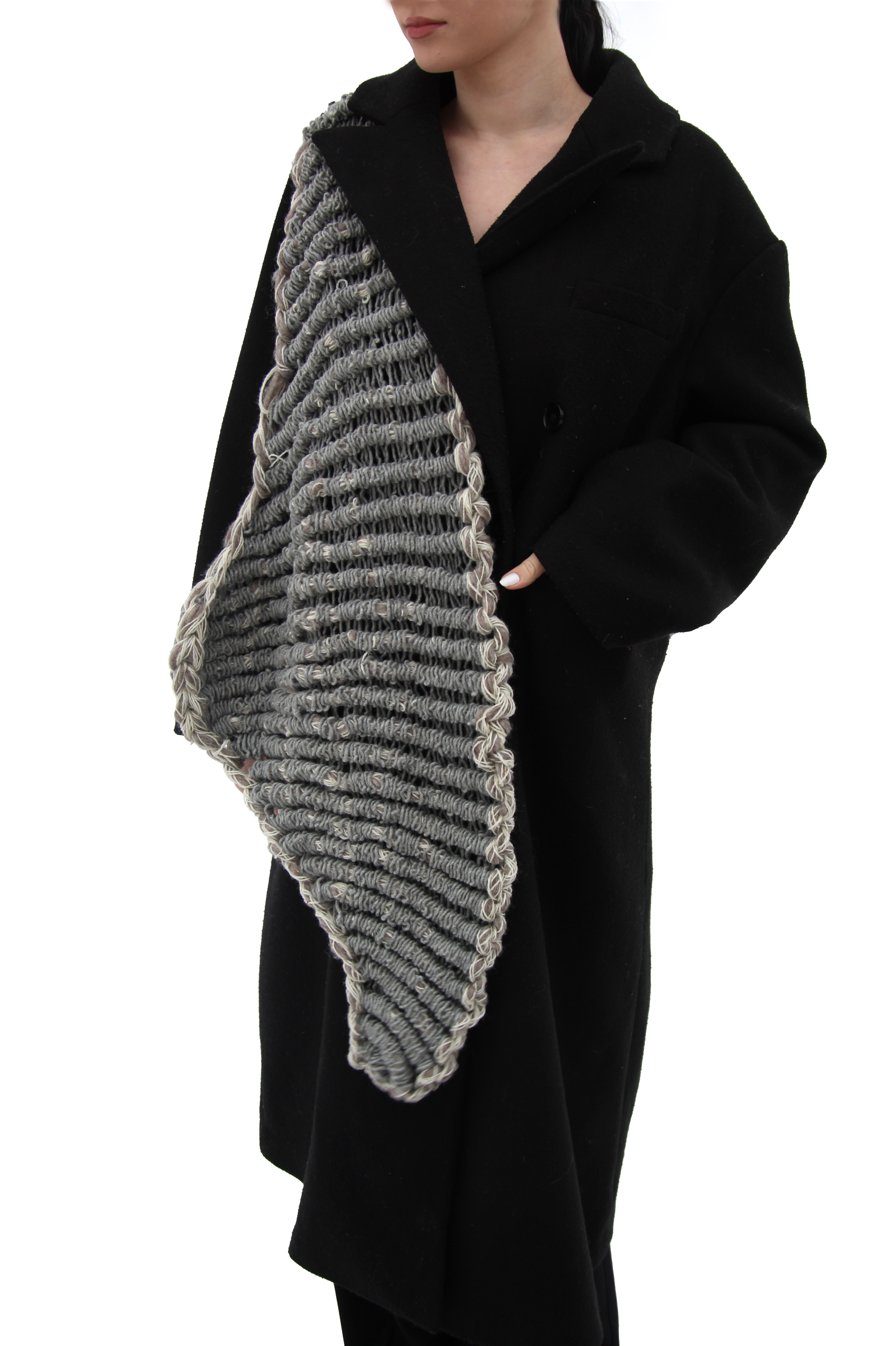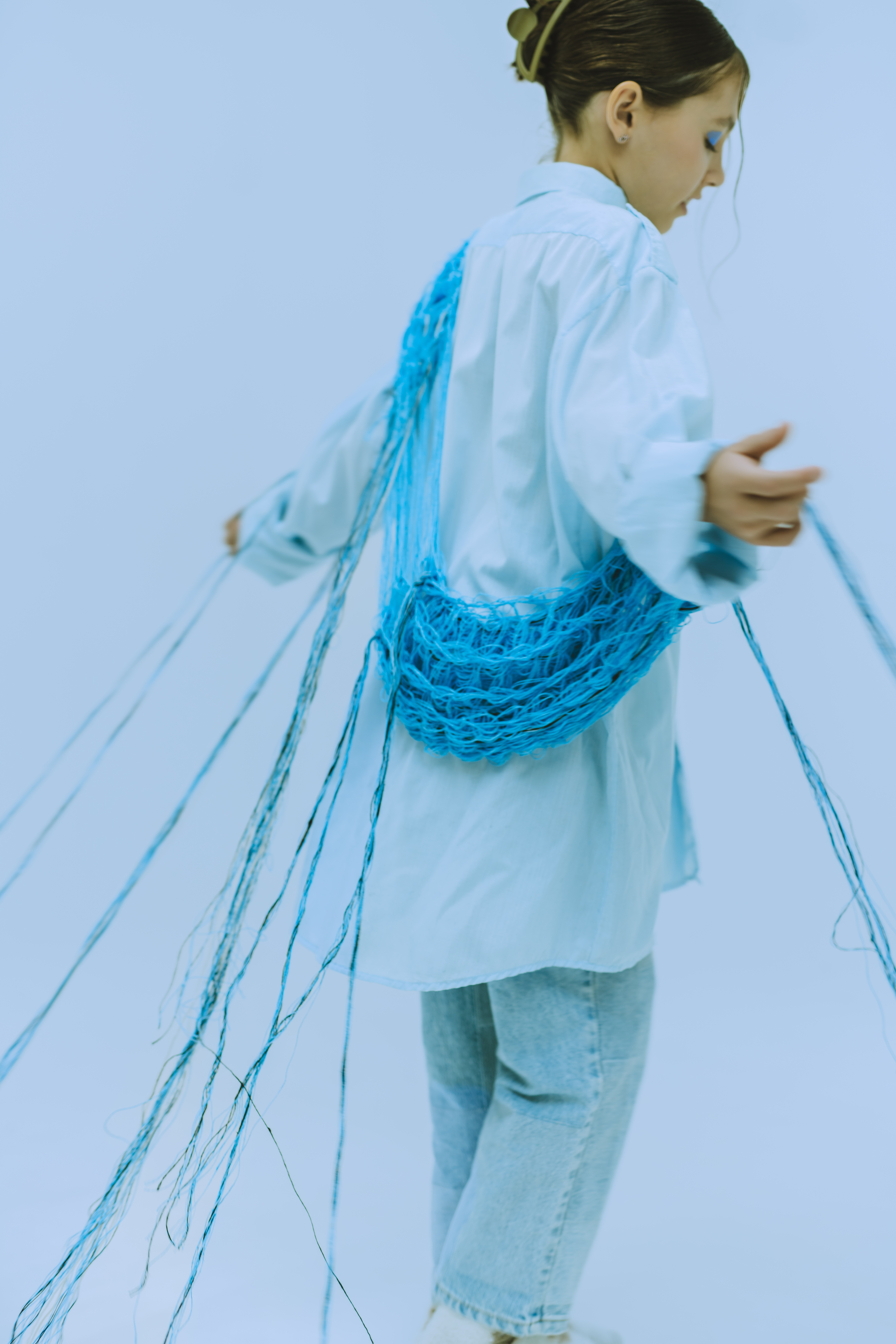 During the 2024 Structure and Material course at Pallas UAS, textile students explored the potential of combining MultiWeave with secondhand garments. The results demonstrated how the technique can be used to re-contextualize waste textiles by integrating them into structured forms. These experiments produced hybrid pieces that blur the boundary between garment, sculpture, and surface design (Figures 16-23).